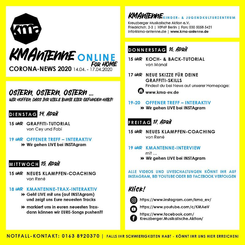 ein neues Graffiti-Tutorial, neue Ausgaben vom Klapfen-Coaching und ein neues Koch- und Back-Tutorial. Die Videos findet ihr auf Youtube. Außerdem sind wir täglich live auf Instagram