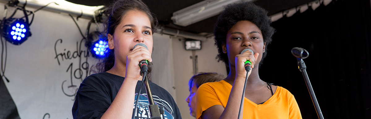 Auf der Musikbühne gibt es Live-Musik von Kindern für Kinder, und auf der Tanzbühne präsentieren wir eure Beiträge sowie den Mottotanz. Außerdem erwarten euch beeindruckende Artistik- und Capoeira-Vorführungen.