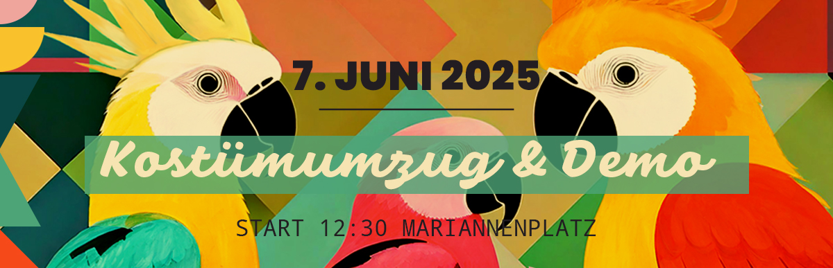 Mit dem Umzug machen wir gemeinsam auf die Situation der Papageien, aber auch auf die Unterfinanzierung der offenen Kinder- und Jugendarbeit, der Jugendkultur und der politischen Bildungsarbeit aufmerksam.